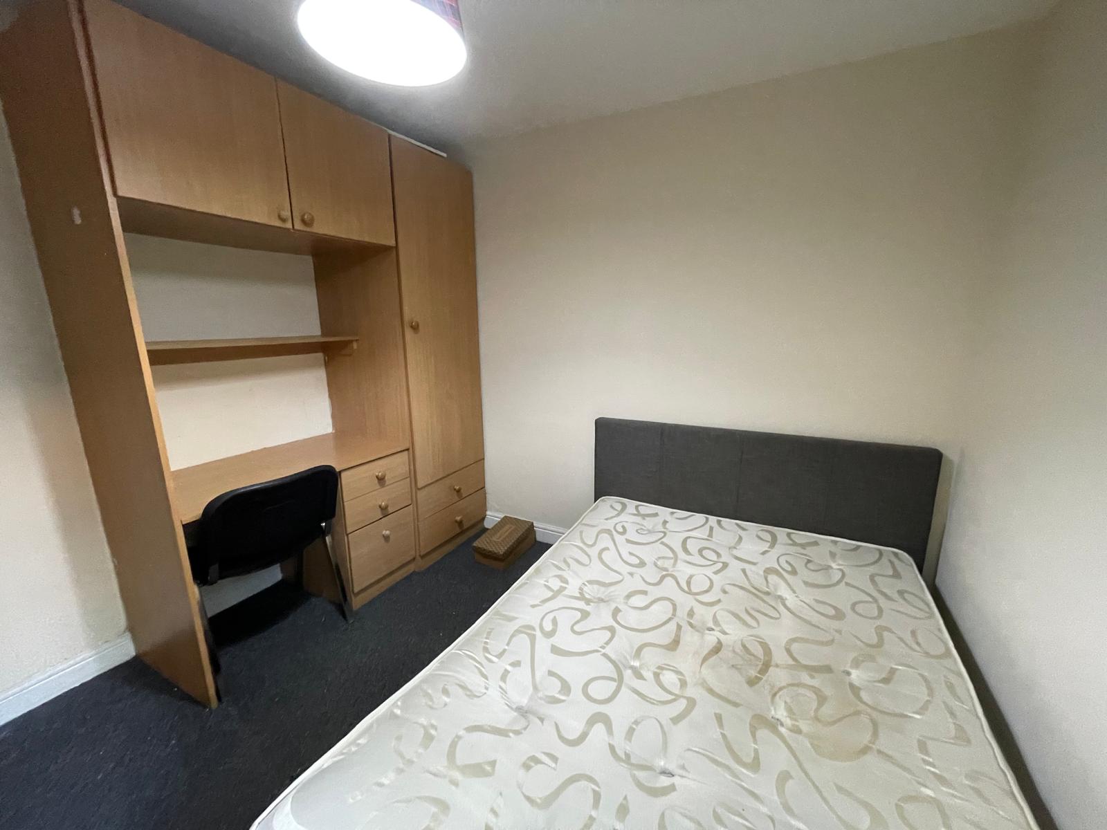 ✅ Fully Furnished – includes a double bed, desk & chair, wardrobe, and shelving unit
